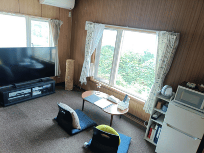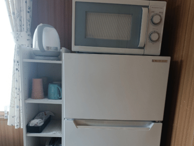 ◆洋室には冷蔵・冷凍庫、電子レンジ、電気ケトル、カトラリー、55インチTV、DVD(BD)デッキを完備しております。