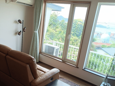 ◆リビングの窓から見えるのは東日本最大の吊り橋『白鳥大橋』。その景色をただただ眺める贅沢な時間をゆったりとお過ごしください。